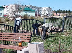 07.05.2024 г. волонтеры собрали бытовой и природный мусор с площадки и прилегающей территории мемориального комплекса, изготовили колышки и обозначили ими кустарники.